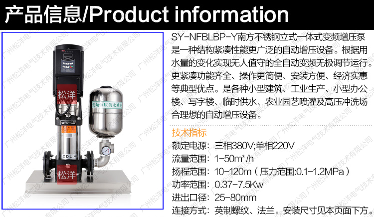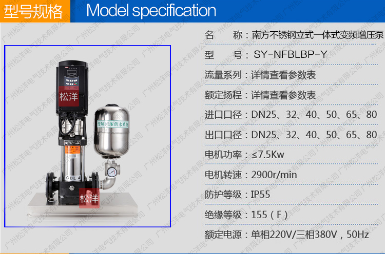 SY - NFBLBP-Y南方不銹鋼立式一體式變頻增壓泵是一種